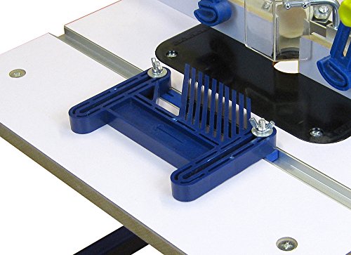 Universal-Oberfräsen-Tisch, zur Verwendung mit allen 1/4 Zoll-Oberfräsen; 2 Befestigungsklemmen, horizontaler Druckkamm, Schneid-Schutz, 40 mm Durchmesser Staubabsaugöffnung; ein Oberfräsen-Tisch verwandelt eine Hand-Oberfräse in ein stationäres Werkzeug, das sicherer zu bedienen und schneller aufzubauen ist als mit freier Hand. Ideal geeignet für alle 1/4 Zoll-Oberfräsen; Dieser kompakte Oberfräsen-Tisch ist geeignet für eine Vielzahl von Arbeiten wie Randleisten, Grabenfräsen und Zapfenschneiden; Rahmen aus Stahl mit einer glatten Mdf-Platte. Die Einschubplatte ist aus robustem Kunststoff und muss gebohrt werden, damit sie zu den Befestigungspunkten der Oberfräse passt. Die Führung ist einfach und effektiv. Die drei Klemmen, die standardmäßig enthalten sind, Halten das Werkstück sicher gegen den Tisch und die Fräse, sodass der Nutzer das Holz nur noch von rechts nach links einschieben muss. Ein Plexiglas-Schutz schützt den Nutzer vor herum fliegenden Schnipseln und ein Staubtrichter ist enthalten für den Anschluss An einen Extraktionsapparat. Ein verschiebbarer Gehrungsanschlag, mit Austauschbarer Holzplatte, rundet die Standard-Ausrüstung ab; geeignet für die Verwendung mit Fräsen mit einem Durchmesser bis 35 mm; inklusive robustem Kunststoff-Einsatz, verstellbare Führung mit zwei auswechselbaren Holzplatten, Horizontaler Druckkamm, zwei vertikale Klemmen und verschiebbarer Gehrungsanschlag; Spezifikationen: Maße: 430 mm X 400 mm; Höhe: 290 mm; table Dicke: 20 mm; Durchlass: 35 mm; Maße (B X T X H): 430 x 400 x 450 mm; Gewicht: 8 kg
